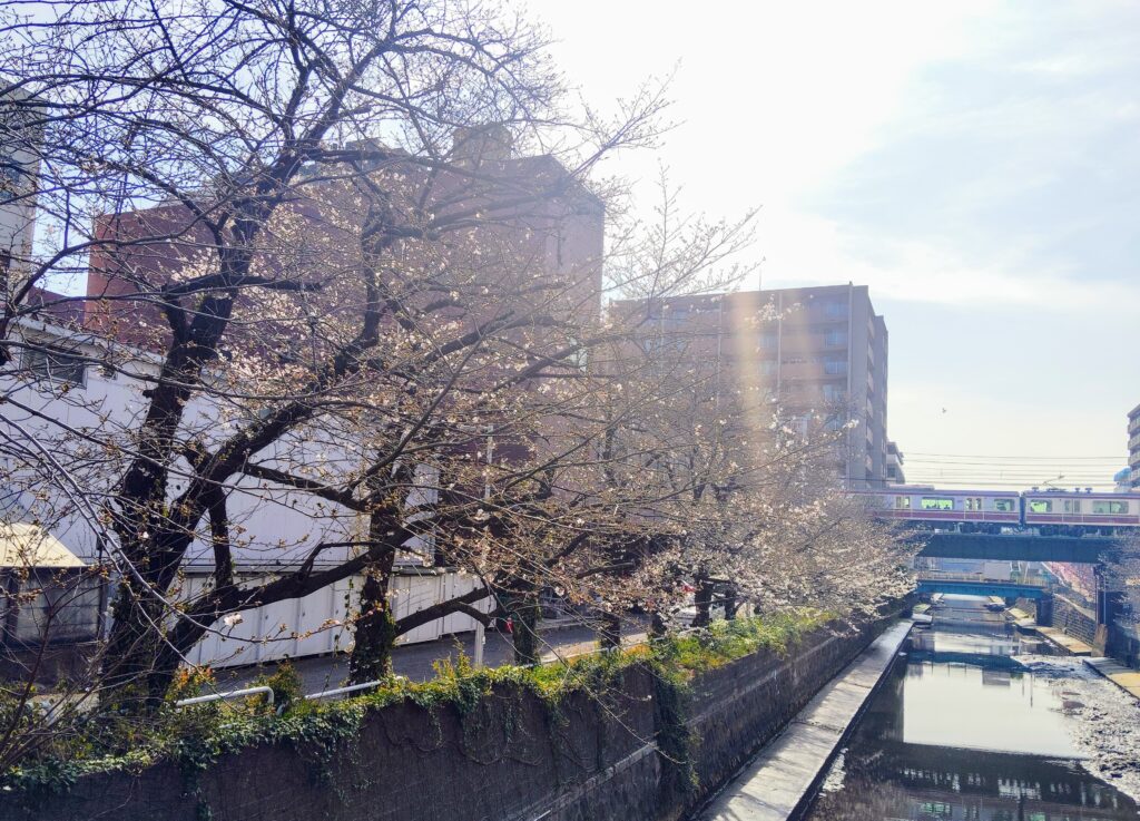 戸部警察の裏の川沿いは、京急線と合わせてフォトスポットですよ!